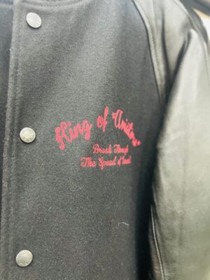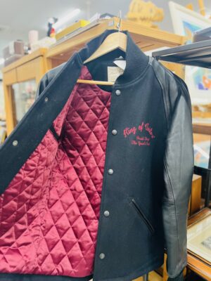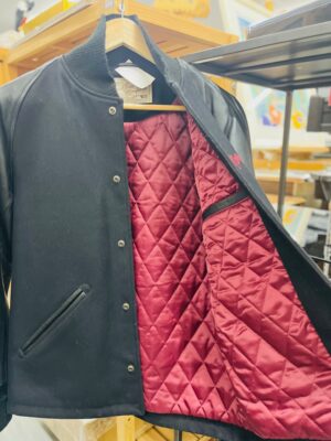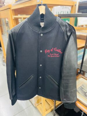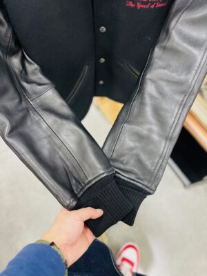 バックのデザインは刺繍になっていて、袖はレザーを使用✨😍