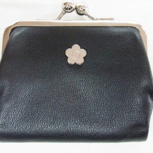 マリークワント レザー 2つ折り財布 がま口付き 黒