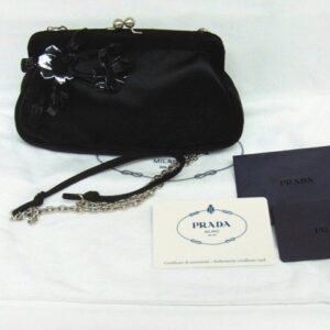PRADA BT0383 キスロック チェーン がま口 ワンショルダー バッグ クラッチバッグ 黒